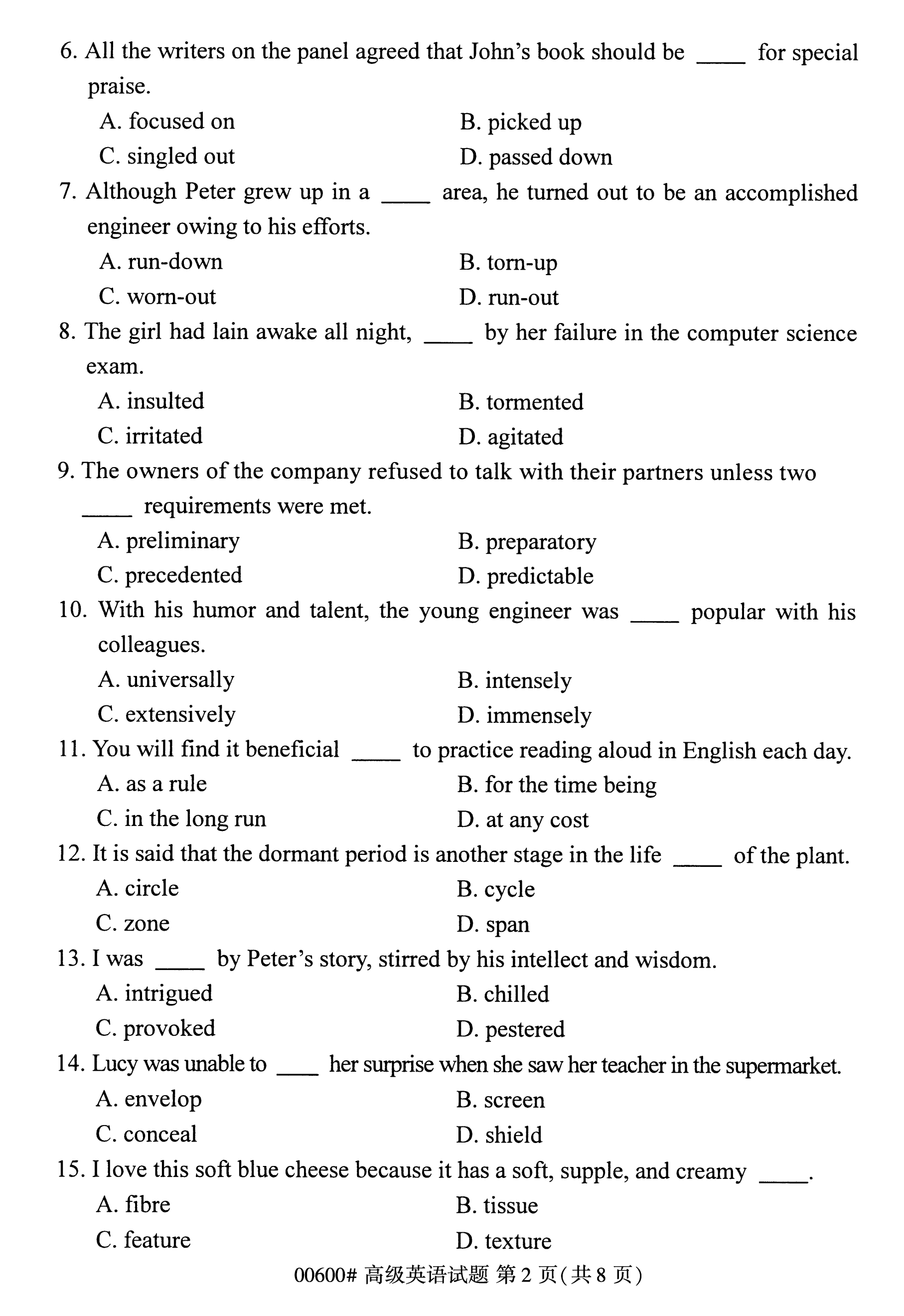 福建自考全國(guó)卷高級(jí)英語(yǔ)(00600)試題