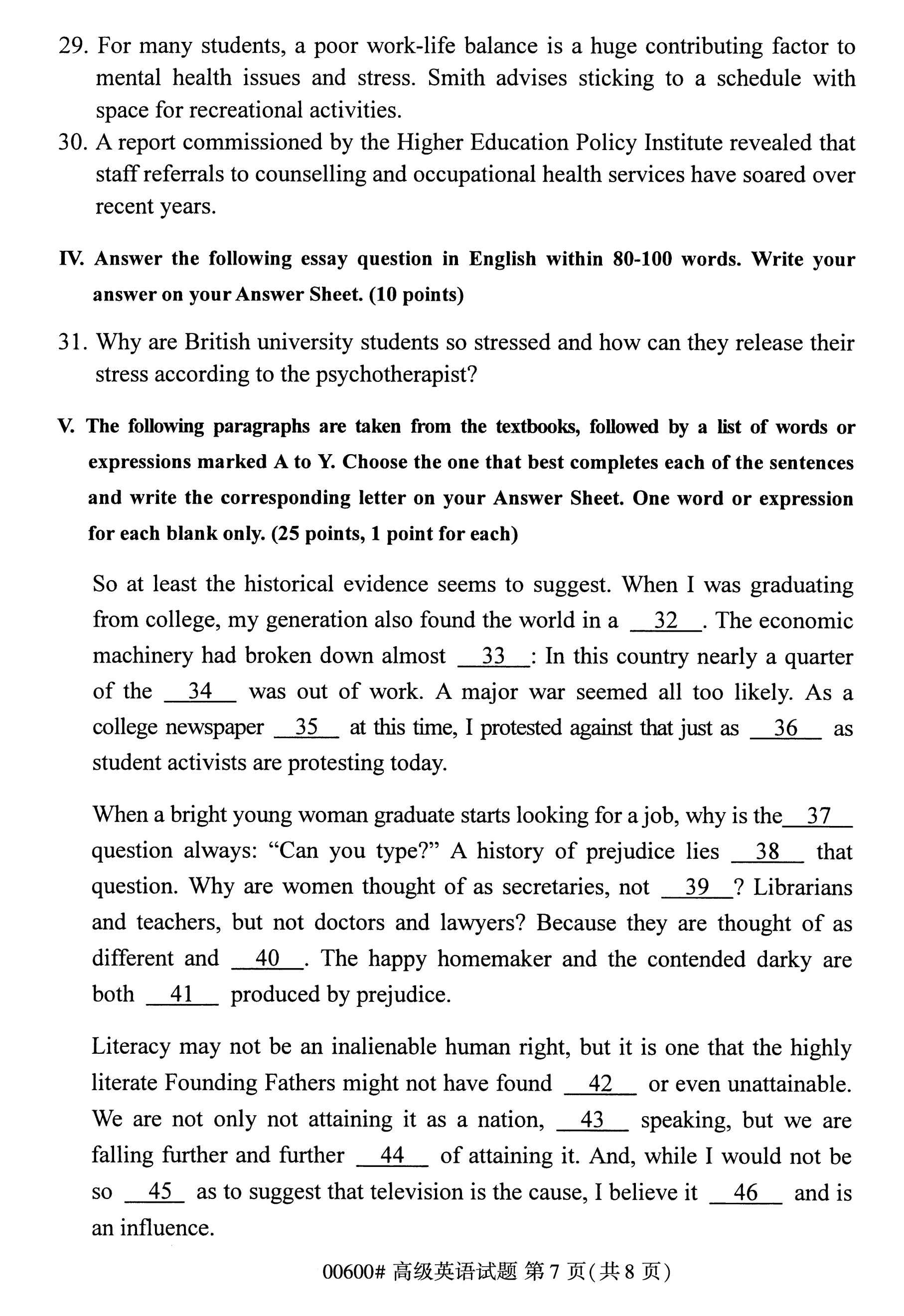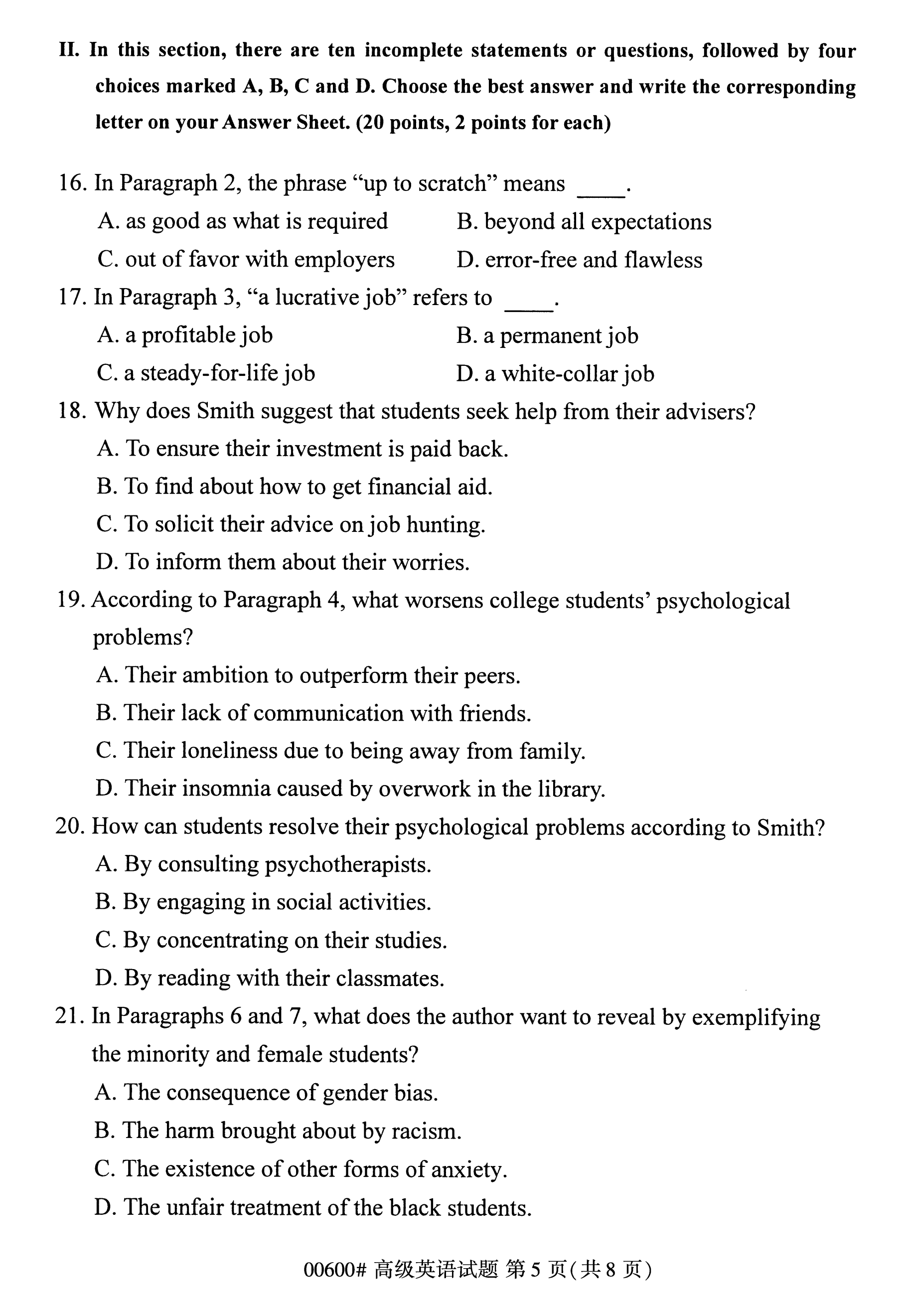 所在位置:福建自考網(wǎng) > 試題題庫(kù) > 自考試題 > 福建自考全國(guó)卷高級(jí)英語(yǔ)(00600)試題