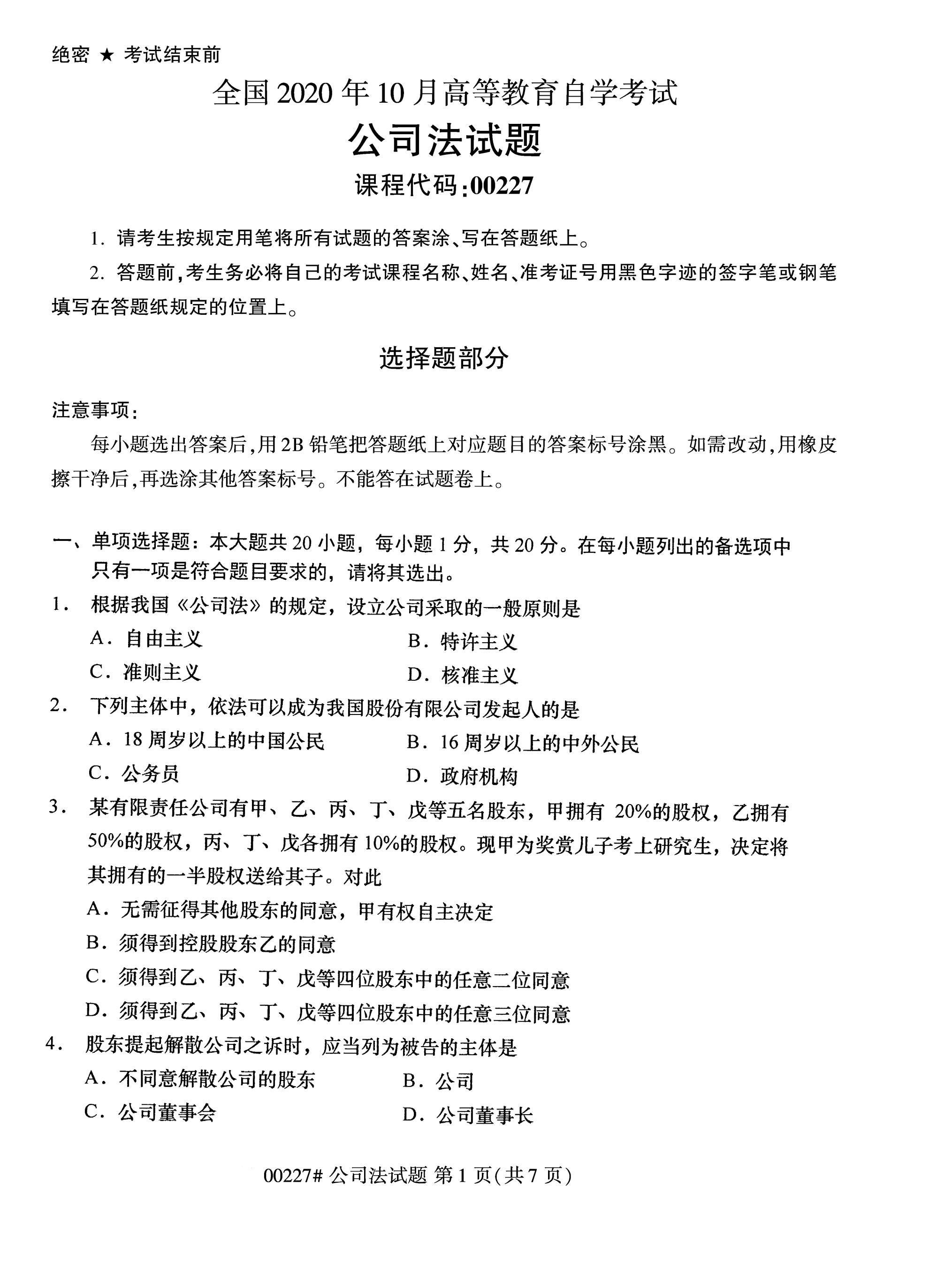 所在位置:福建自考網(wǎng) > 試題題庫(kù) > 自考試題 > 福建自考全國(guó)卷公司法(00227)試題