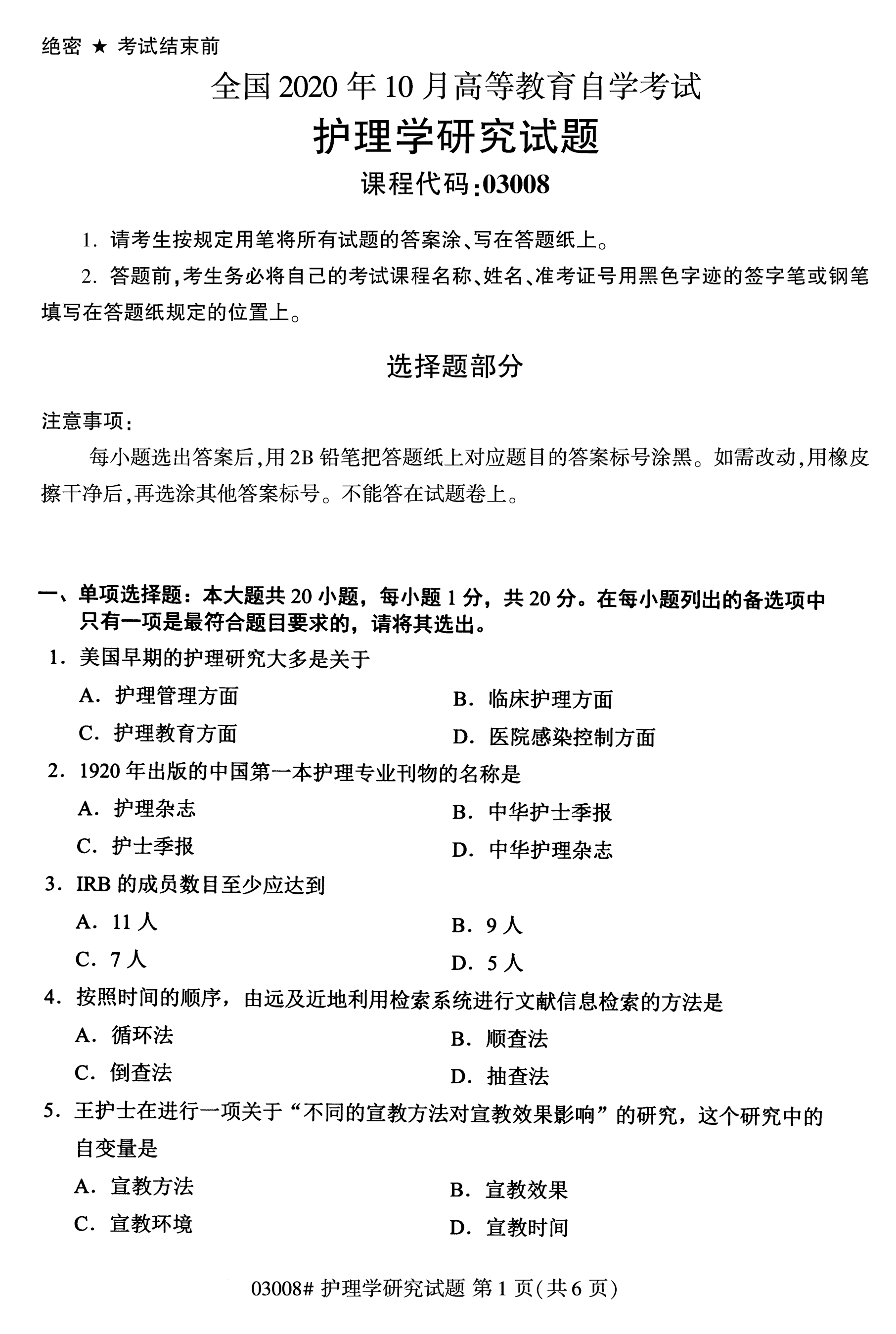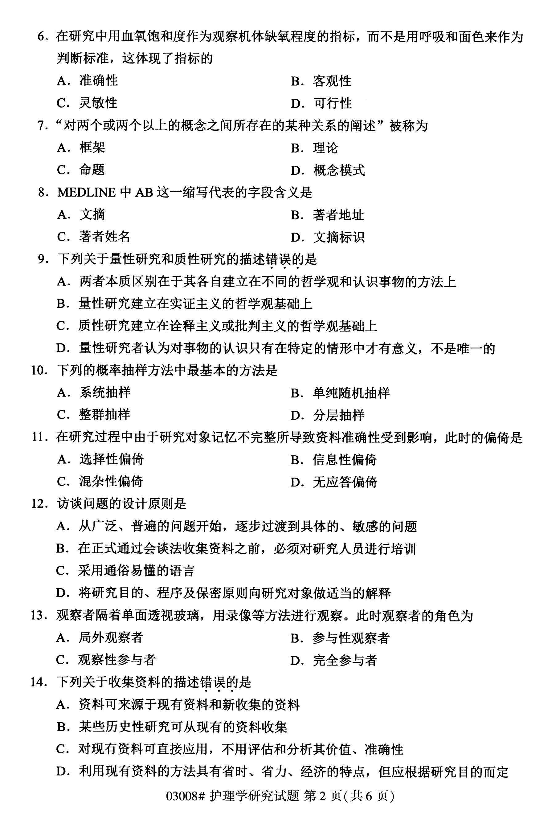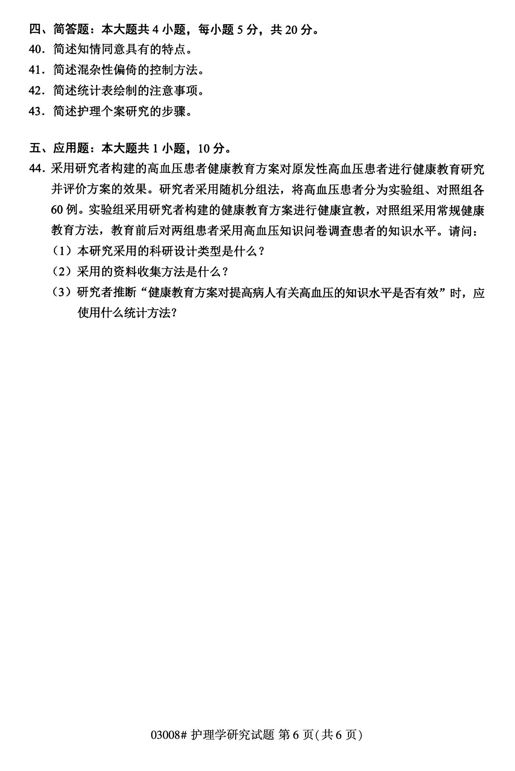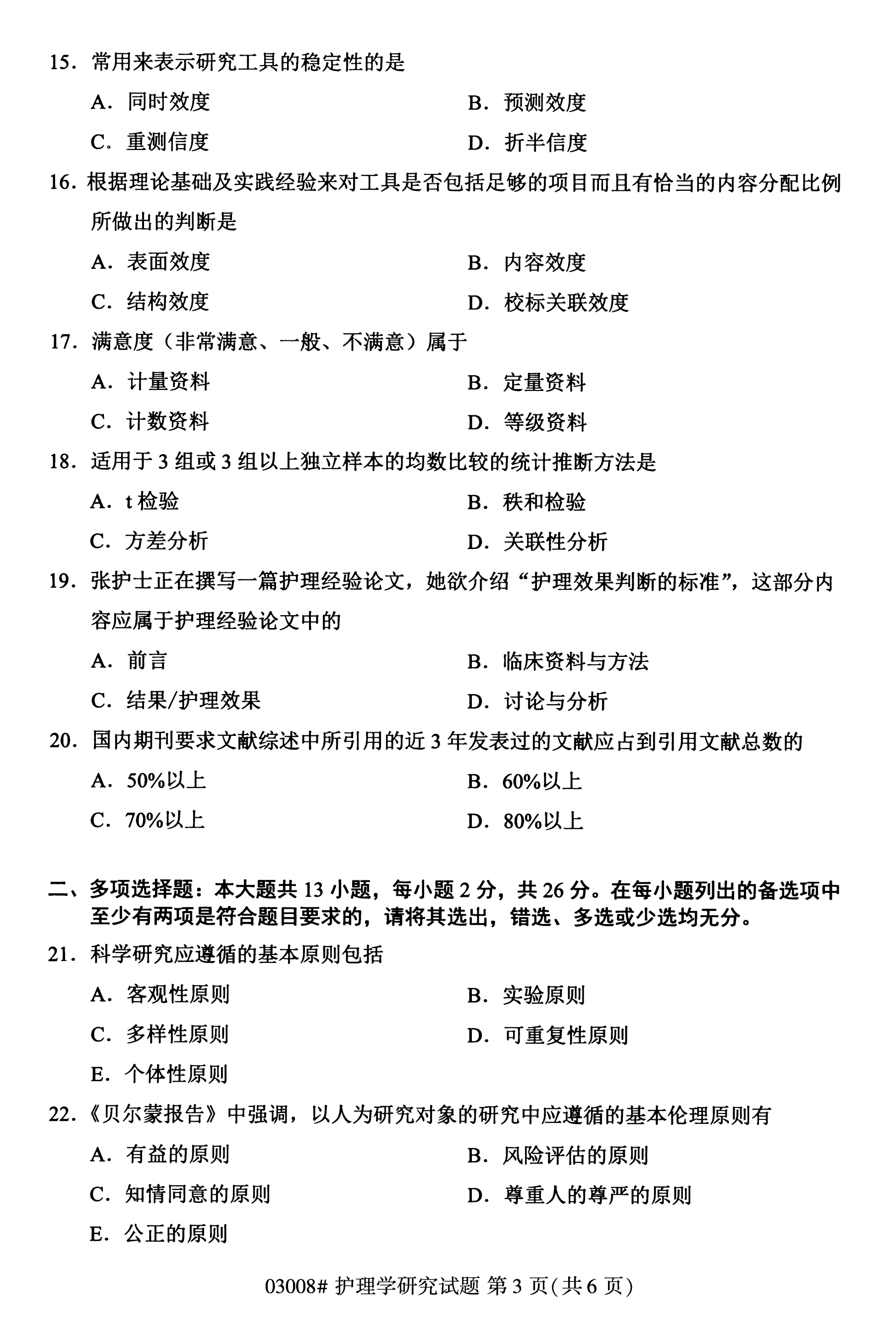 所在位置:福建自考網(wǎng) > 試題題庫(kù) > 自考答案 > 福建成人自考全國(guó)卷護(hù)理學(xué)研究(03008)試題